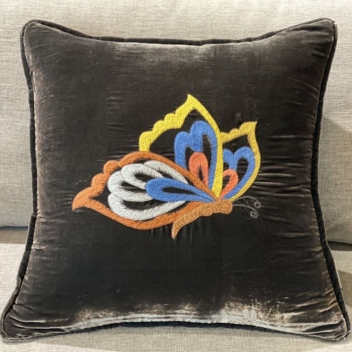Gối nhung thêu bướm xám đen/GT008