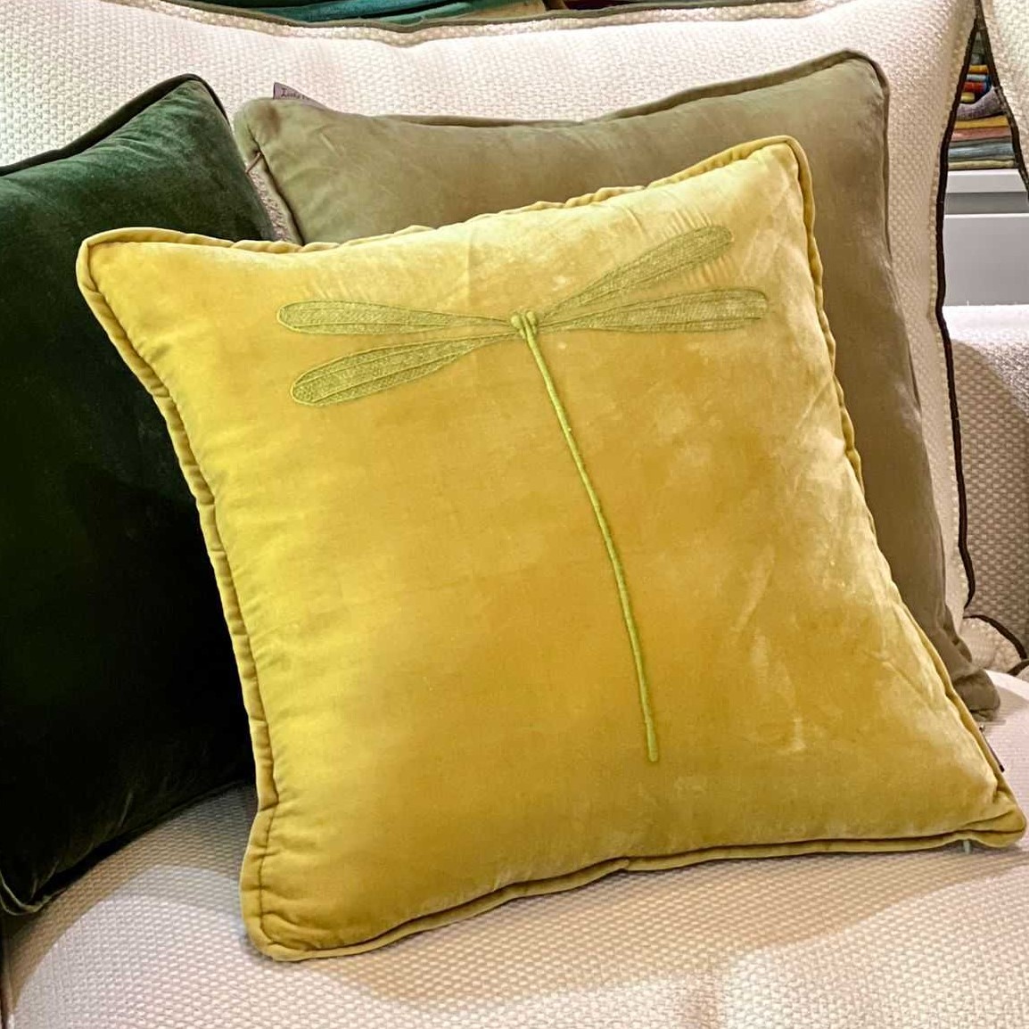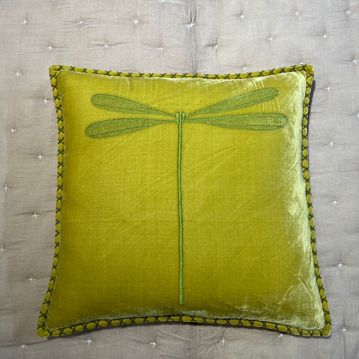Light green Dragonfly embroidered pillow/GT019